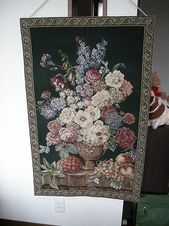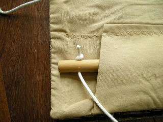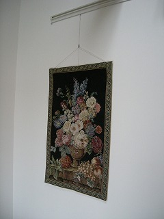 タペストリー側にも買ってきたロープを通してと。