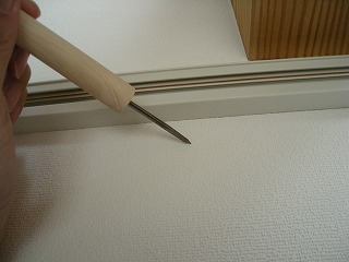 位置出しした4箇所にビス用のした穴をキリで